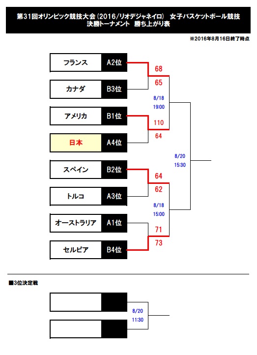リオ五輪女子バスケトーナメント表